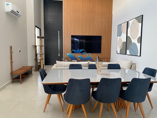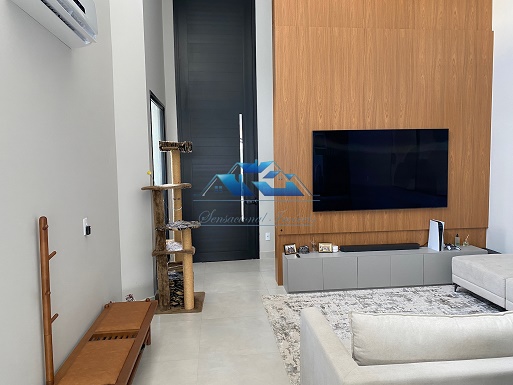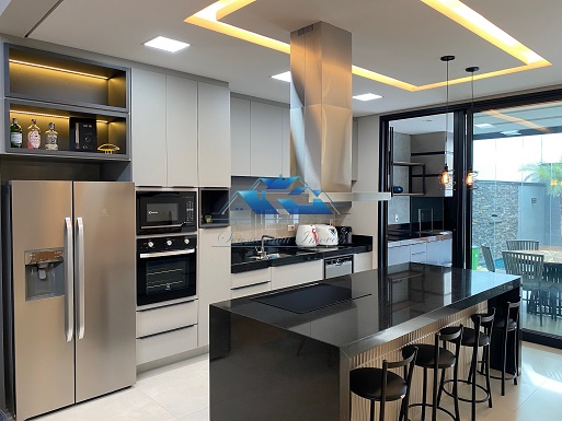 Projeto contemporâneo, ambientes integrados, pé direito duplo.